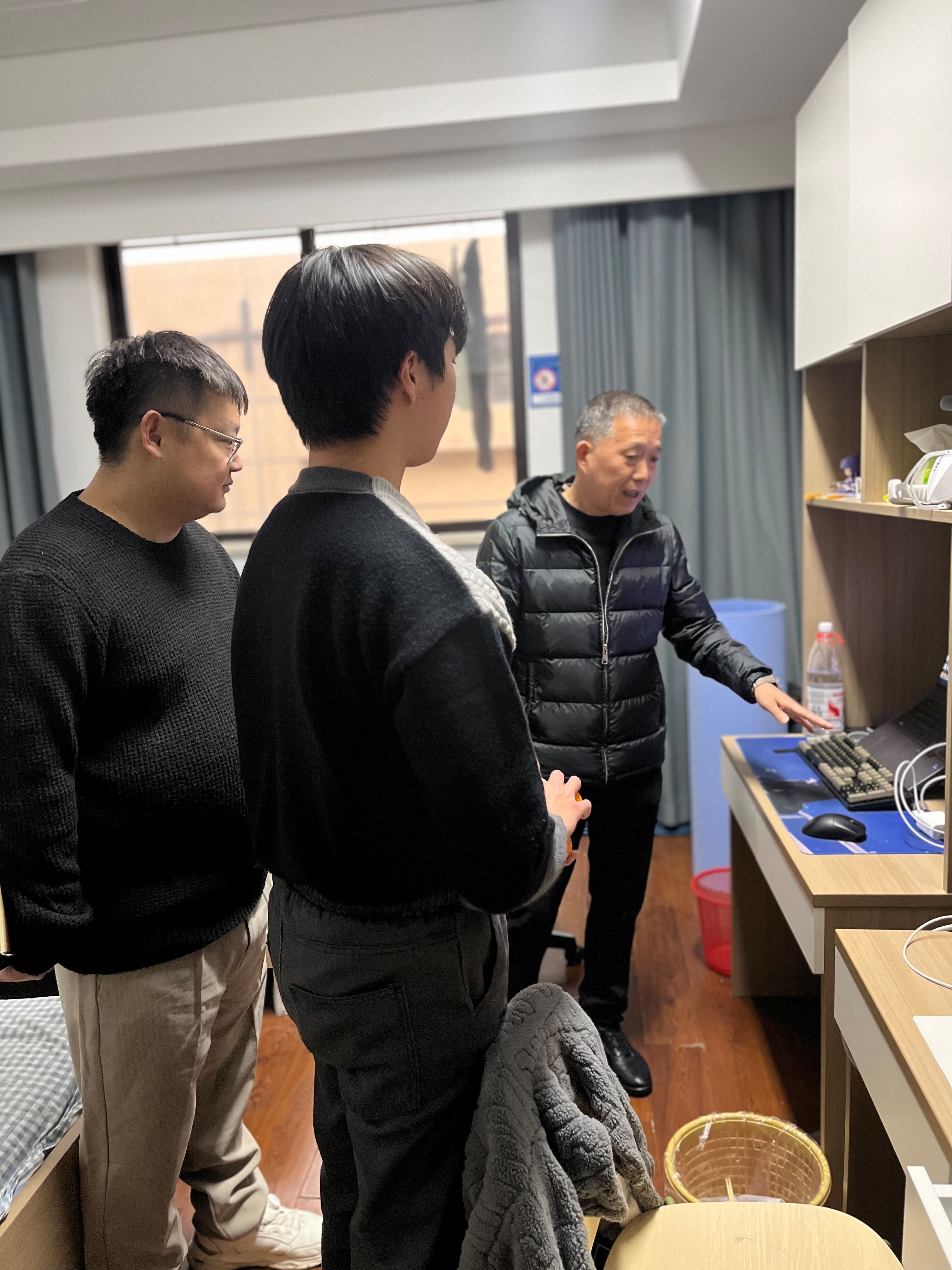 检查过程中,老师们与同学们进行了亲切交流,细致了解大家近期的学习进展与生活状况,并重点就宿舍安全问题进行温馨提醒:严格遵守宿舍用电规范,坚决杜绝使用违规电器,自觉养成“人走断电”的良好习惯。何尧军在检查中强调,各班主任要经常性深入学生寝室,密切关注学生动态,严格对照安全工作标准,进行全面、细致地摸排,确保潜在安全隐患及时发现、立即整改,切实为全体学生营造一个安全、整洁、文明、舒适的居住环境。